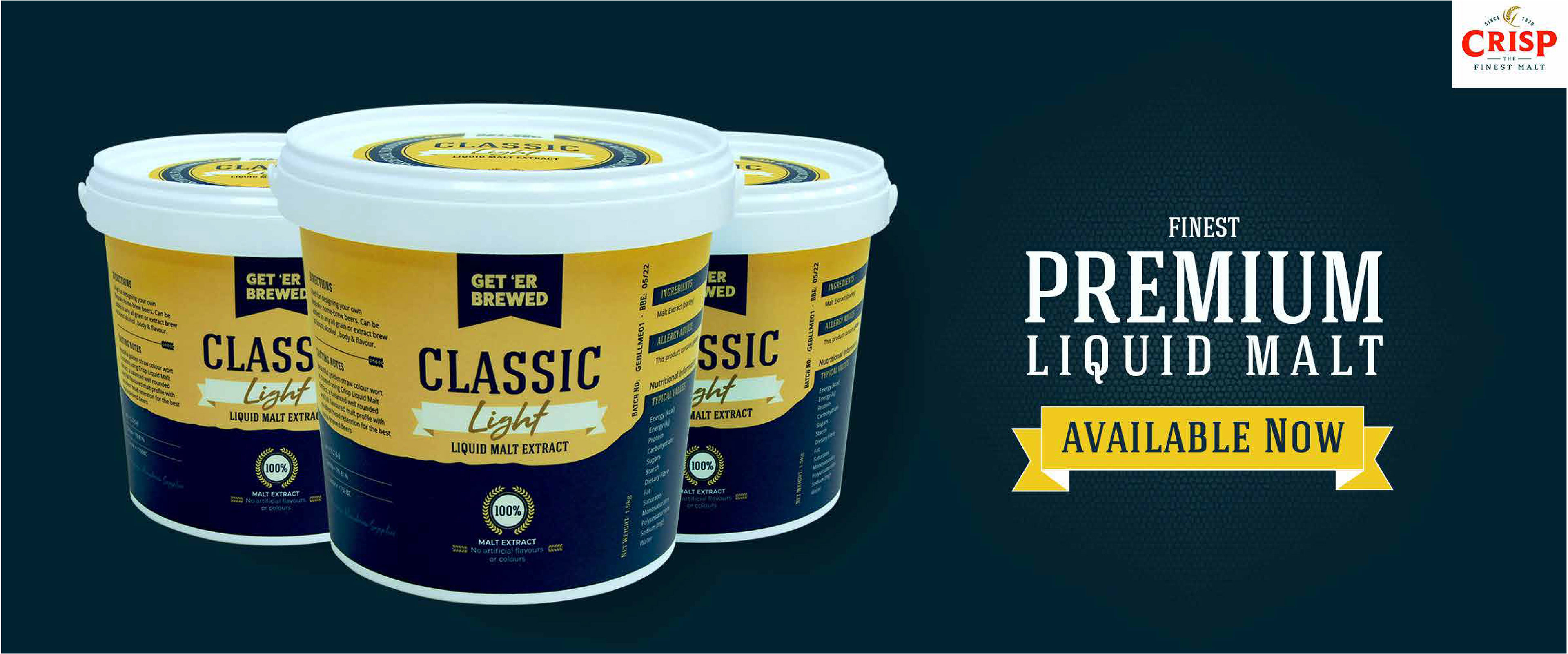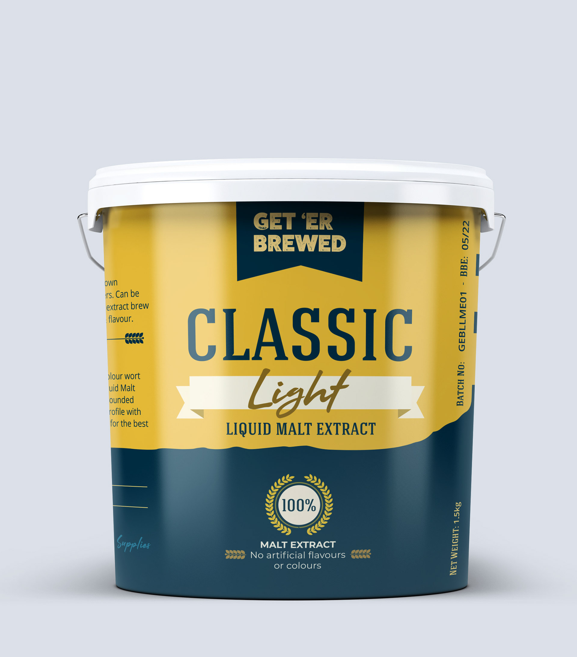 Classic light Liquid Malt Extract was a new product developed for a small brewery in Northern Ireland. The client required branded product labels designed for resealable tubs.