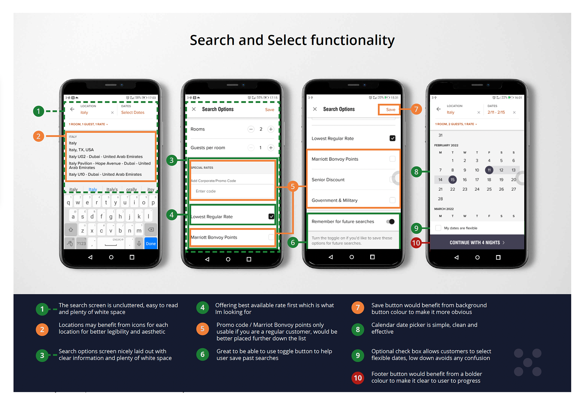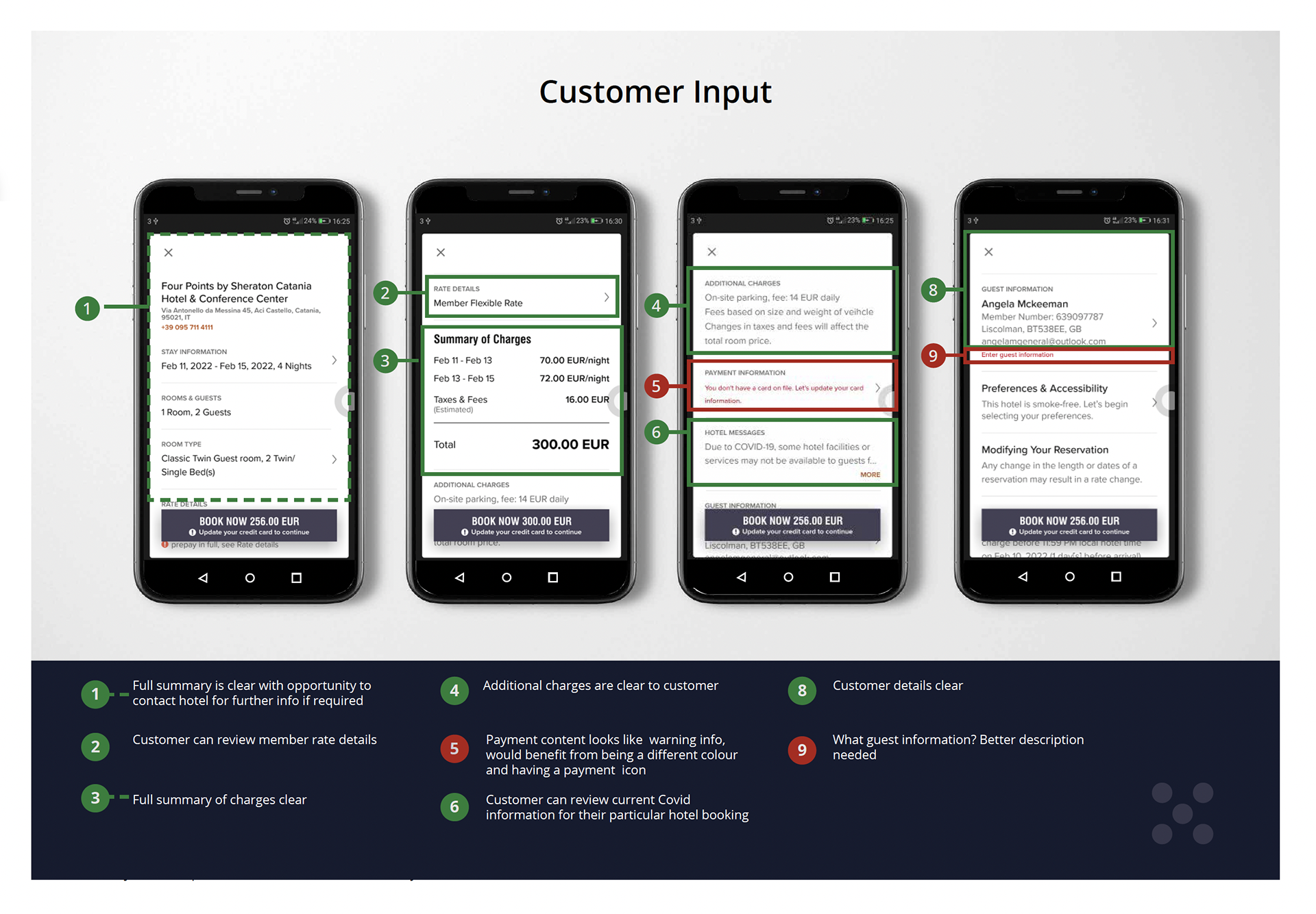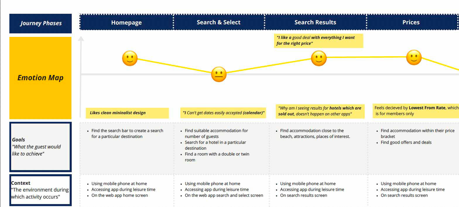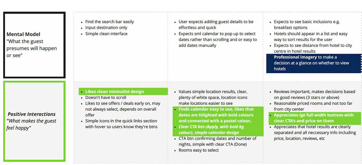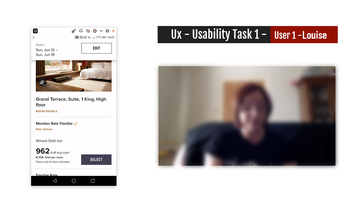 I conducted usability tests across three different hotels, involving three users. Gaining a perspective on previous bookings, where they had preferences for particular hotels and their booking system.