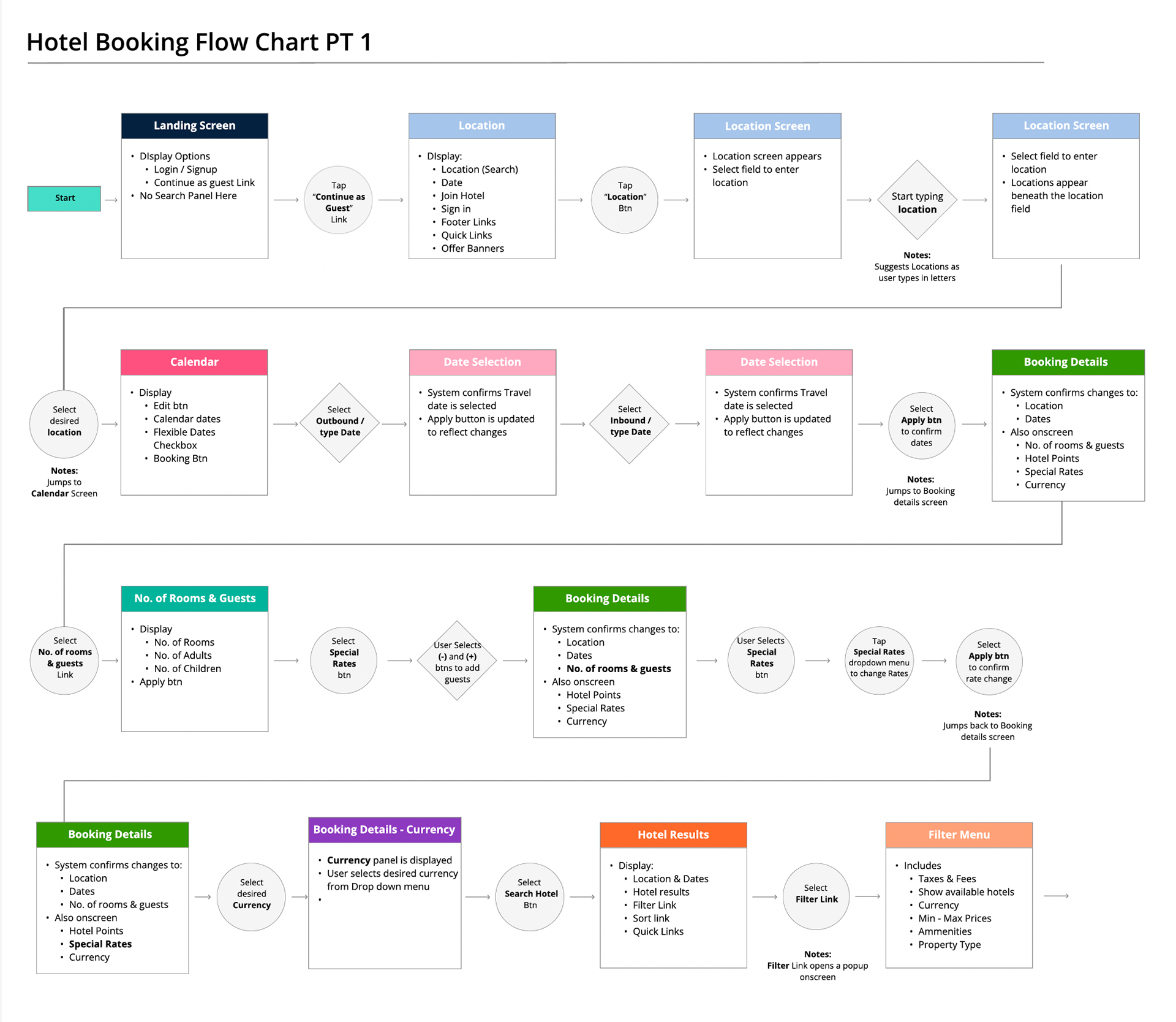 Onto the design stage of the mobile app. I've discovered what the issues are and now have to define a high-level booking flow for the app. This started at the homepage and ended at the Reservation screen.